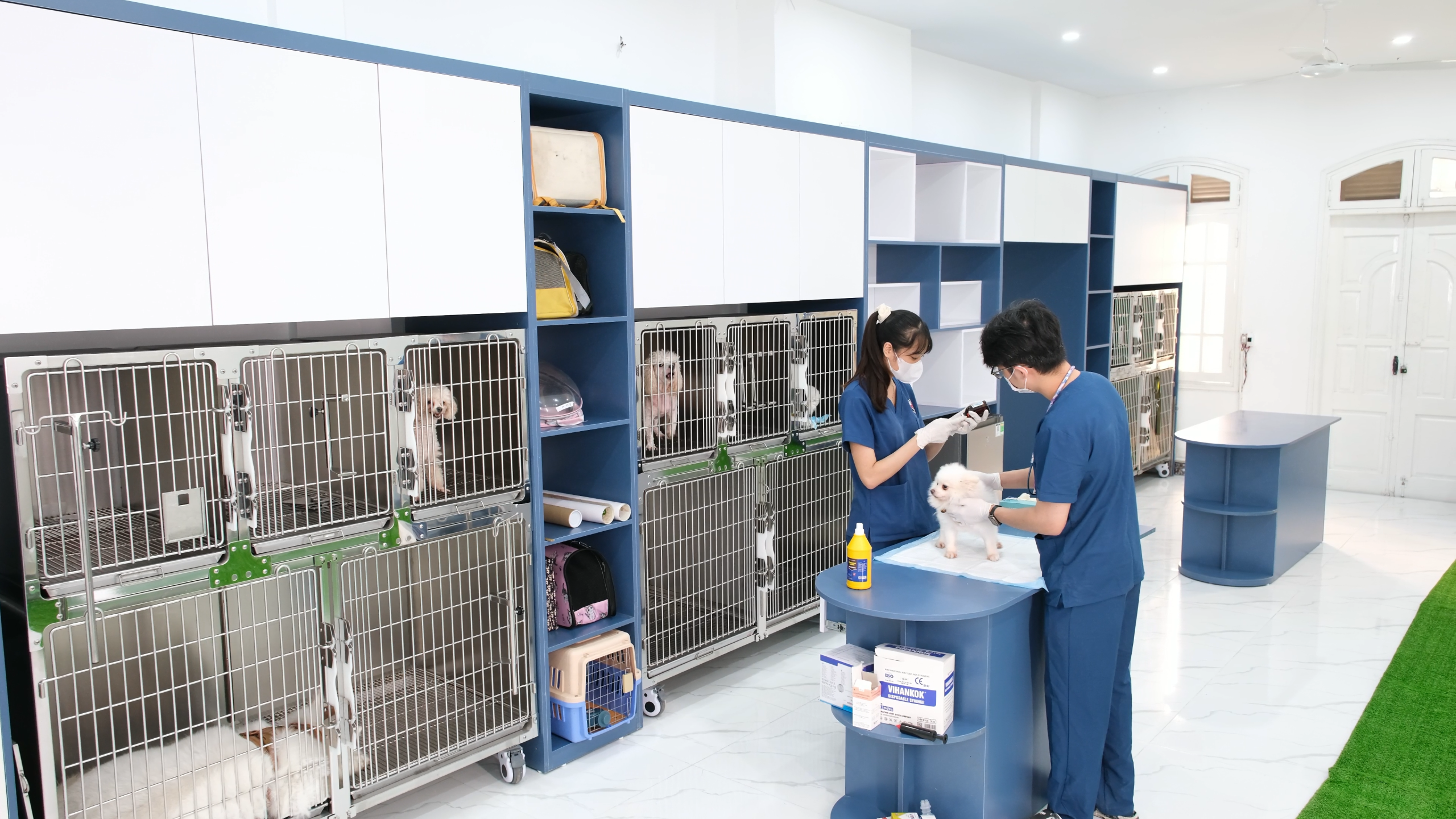 Mỗi phòng lưu trú được vệ sinh định kỳ bằng dung dịch an toàn, có hệ thống thông gió, khu vực tách biệt giữa chó và mèo nhằm giảm stress và hạn chế tiếng ồn. Kỹ thuật viên chăm sóc trực tiếp theo dõi ăn uống – bài tiết – hành vi – tình trạng da lông của từng bé và ghi chép vào hồ sơ để đảm bảo bé luôn trong trạng thái tốt nhất.